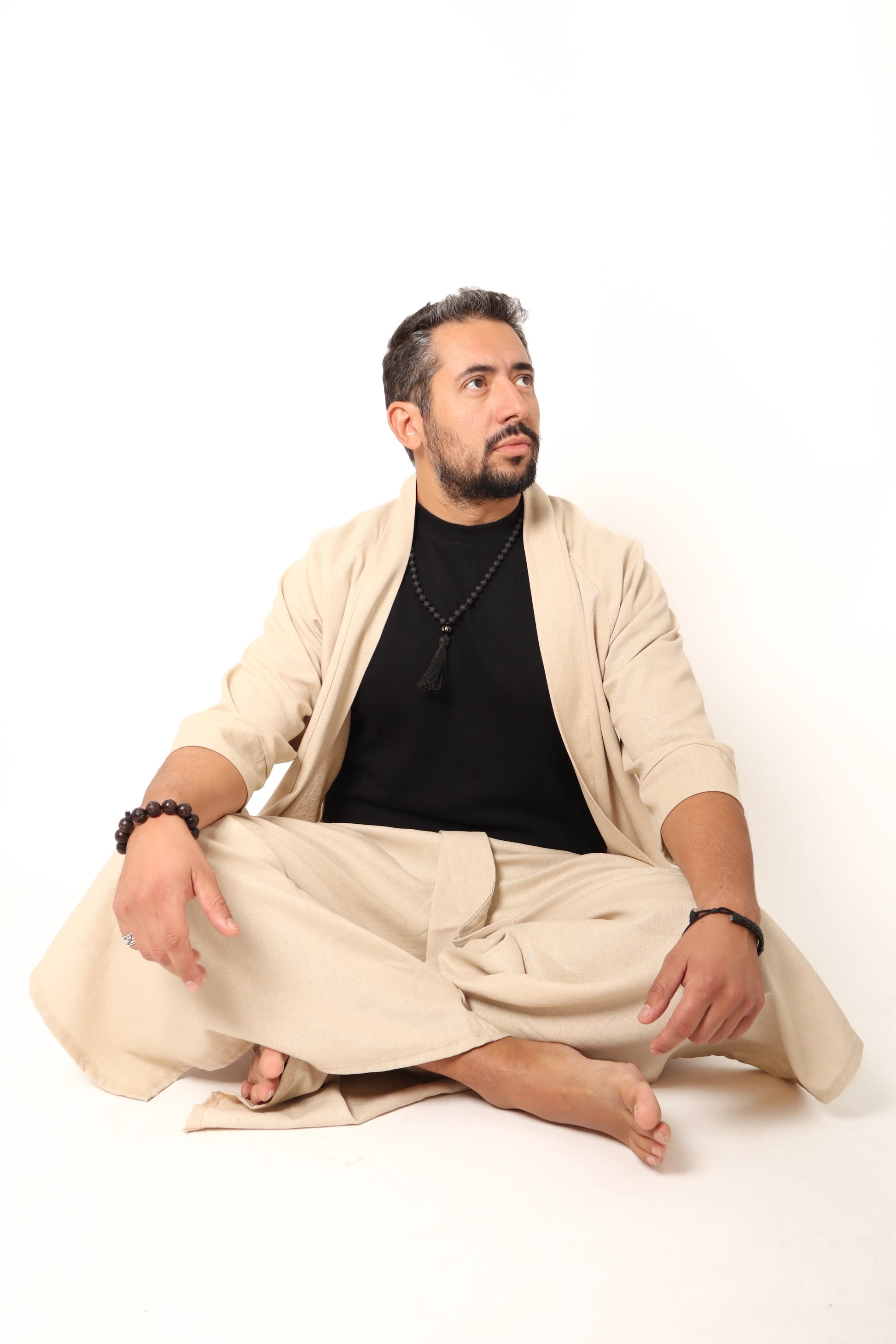 Un conjunto diseñado para sentirse fluido, elegante y naturalmente cómodo. El kimono Kyo aporta una caída ligera y envolvente, con movimiento suave y presencia sutil. Su silueta libera, acompaña y transforma cualquier postura con una estética limpia.