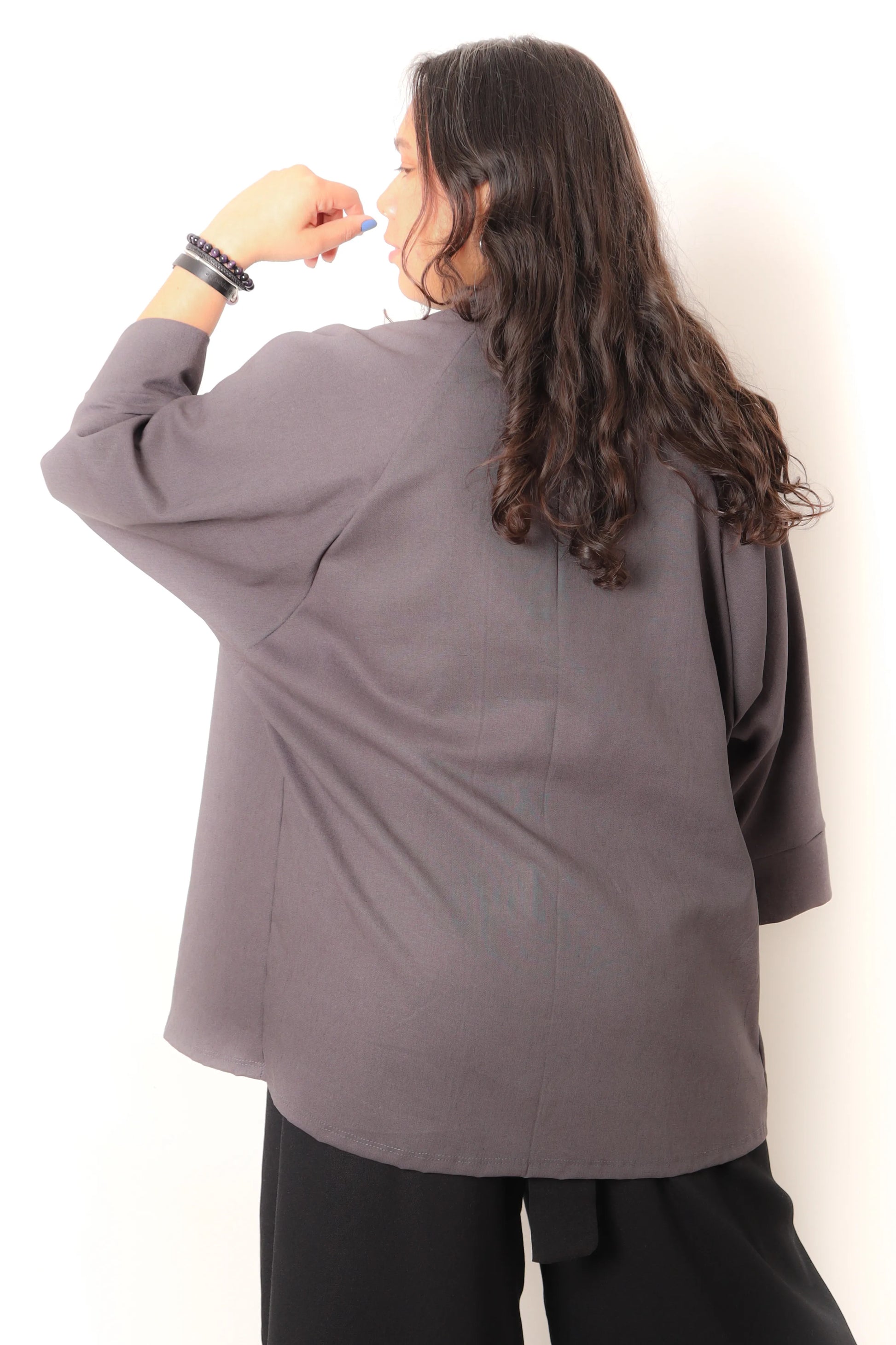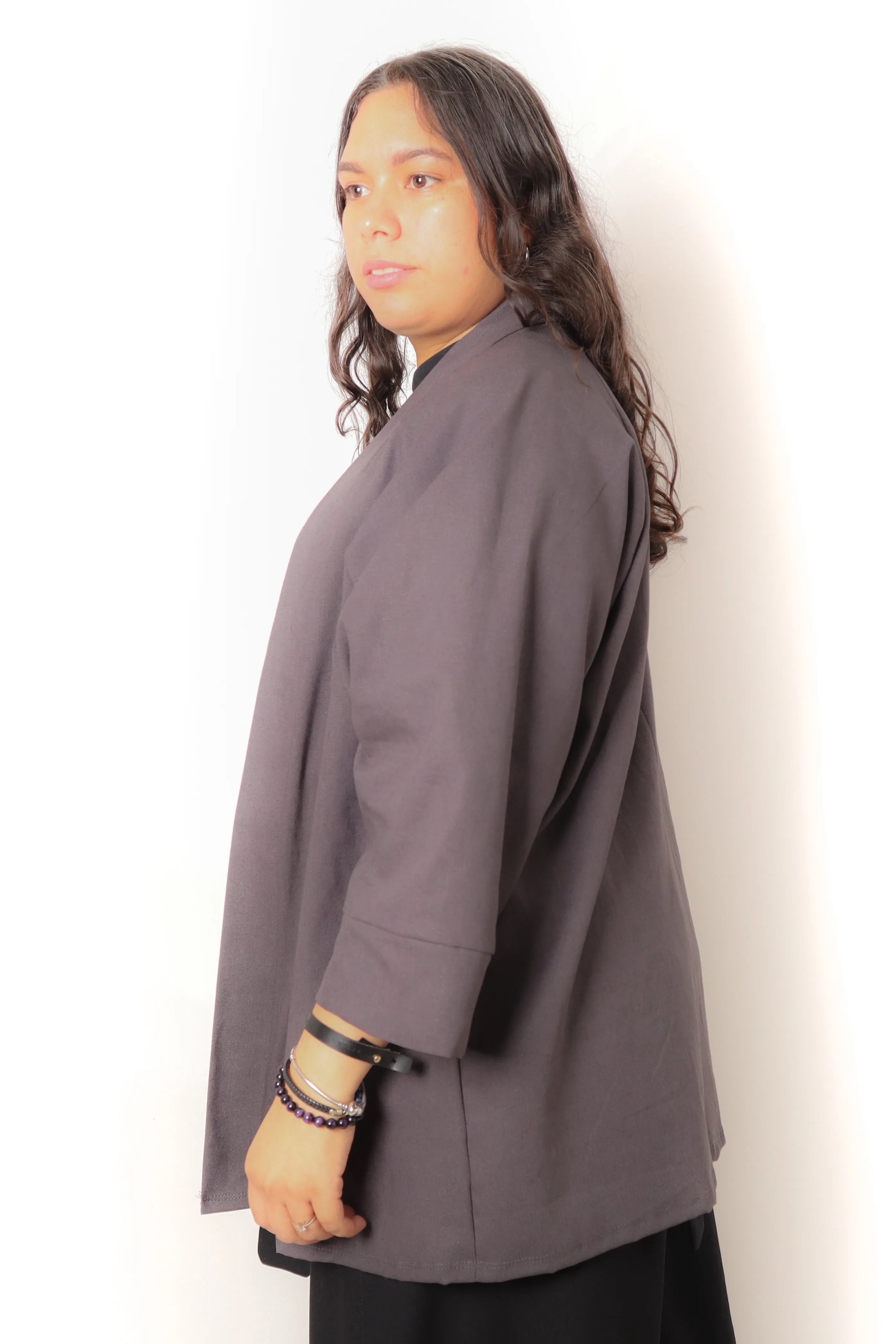 El Kimono Kyo está inspirado en el tradicional haori japonés, reinterpretado para darle a cada look amplitud, movimiento y elegancia sin esfuerzo. Su diseño de mangas ranglán elimina la rigidez de la sisa, lo que permite que la prenda fluya con naturalidad sobre diferentes tipos de cuerpo y refuerza la idea de un kimono realmente sin talla.